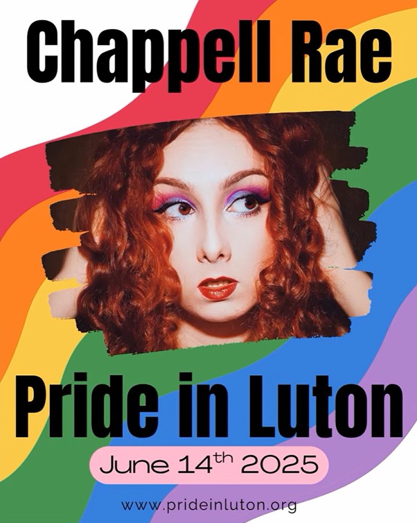 Rae’s Chappell Rae Tribute has been booked for the Pride in Luton Festival on 14th June 2025. For further details, click here.